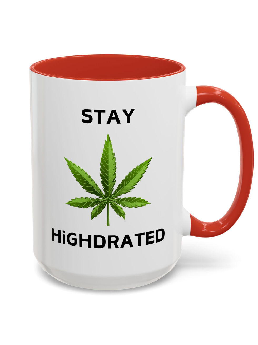 Stay Highdrated Funny 420 Marijuana Pun Accent Coffee Mug (11, 15oz)
